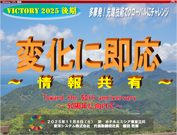 テーマ「変化に即応」サブテーマ「~情報共有~」にて、飯田社長 及び ゼネラルマネージャ等の社員代表の講話がありました。